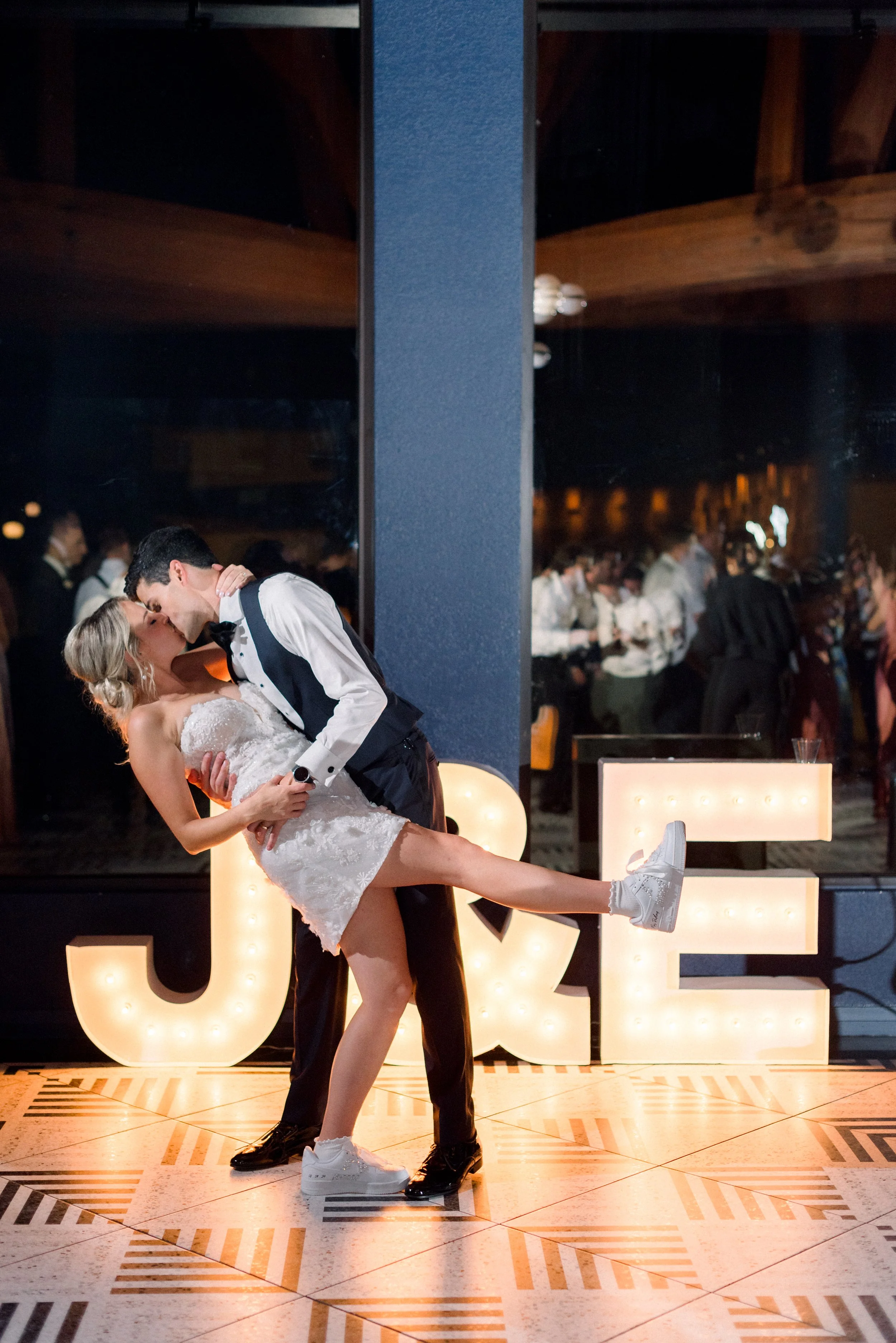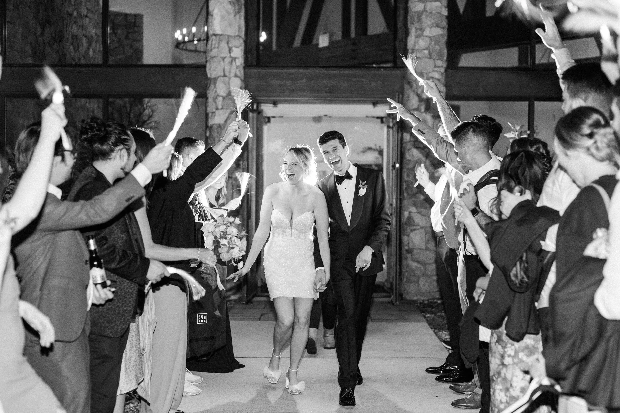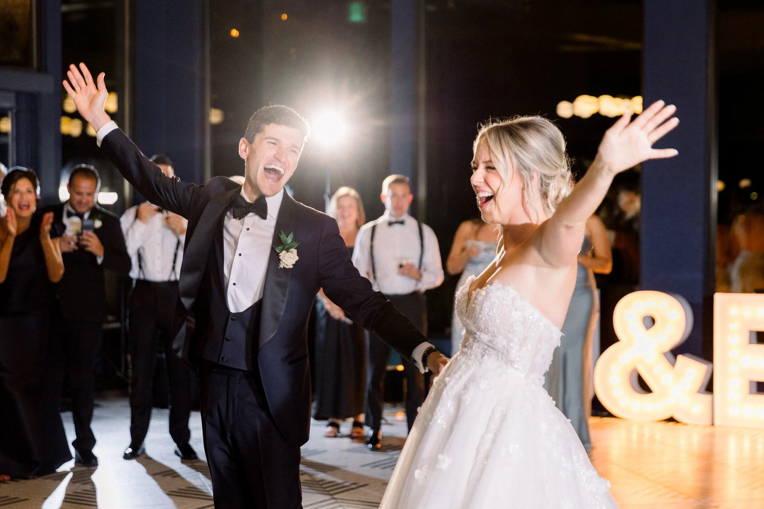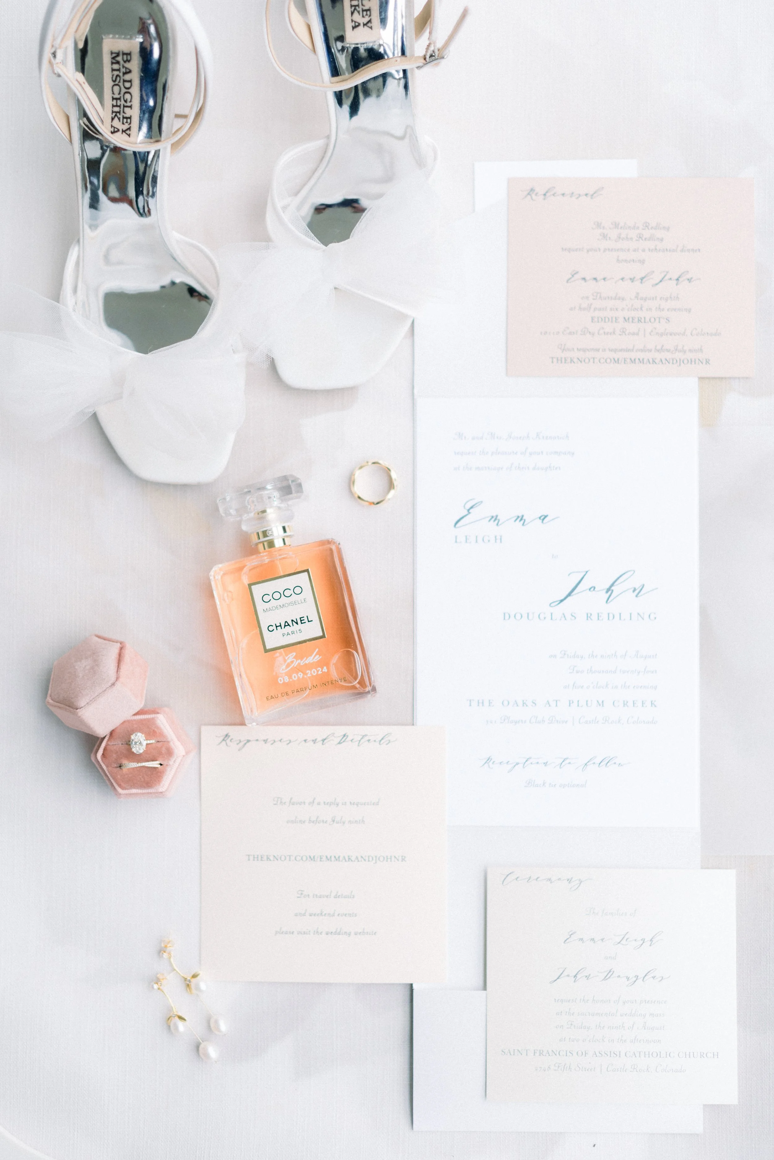 Emma and John’s wedding day was nothing short of magical. Set against the picturesque backdrop of The Oaks at Plum Creek in Castle Rock, Colorado, their celebration was a perfect blend of elegance, personal touches, and heartfelt moments. The Oaks at Plum Creek offers a stunning setting with its rolling hills, mature trees, and beautiful views of the golf course. The outdoor ceremony space, lined with trees, provided the perfect golden hour light as the sun set in the west. Emma and John exchanged vows in the outdoor ceremony space, surrounded by their closest family and friends. The couple's attention to detail was evident in every aspect of the décor, from the elegant table settings to the tiny details like their cocktail napkins that had handwritten notes the couple had written to each other on them. One of the highlight moments was Emmas dress reveal during the reception that was perfectly timed with her favorite Taylor Swift song. This moment made it allllll over TikTok and even to Inside Edition!