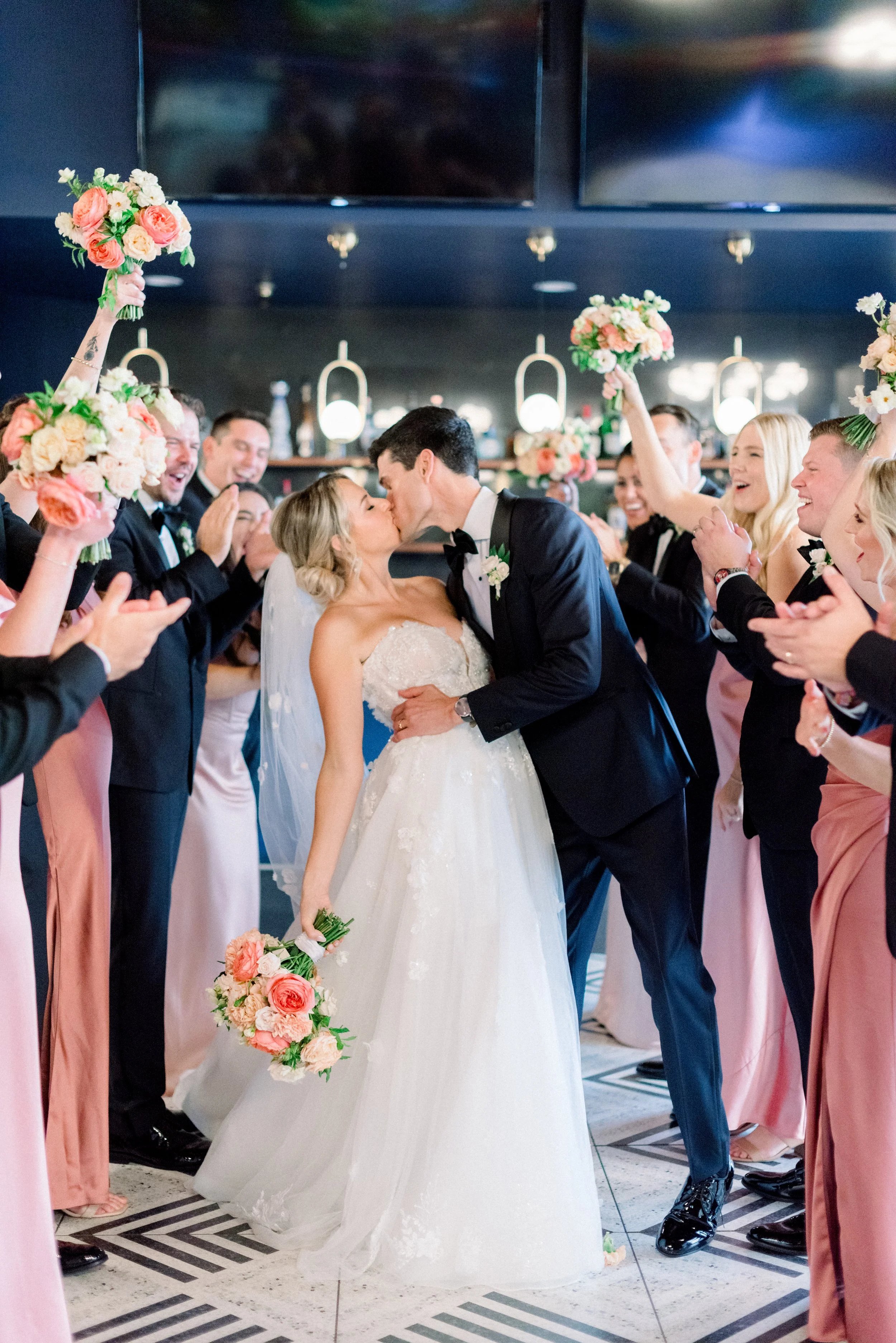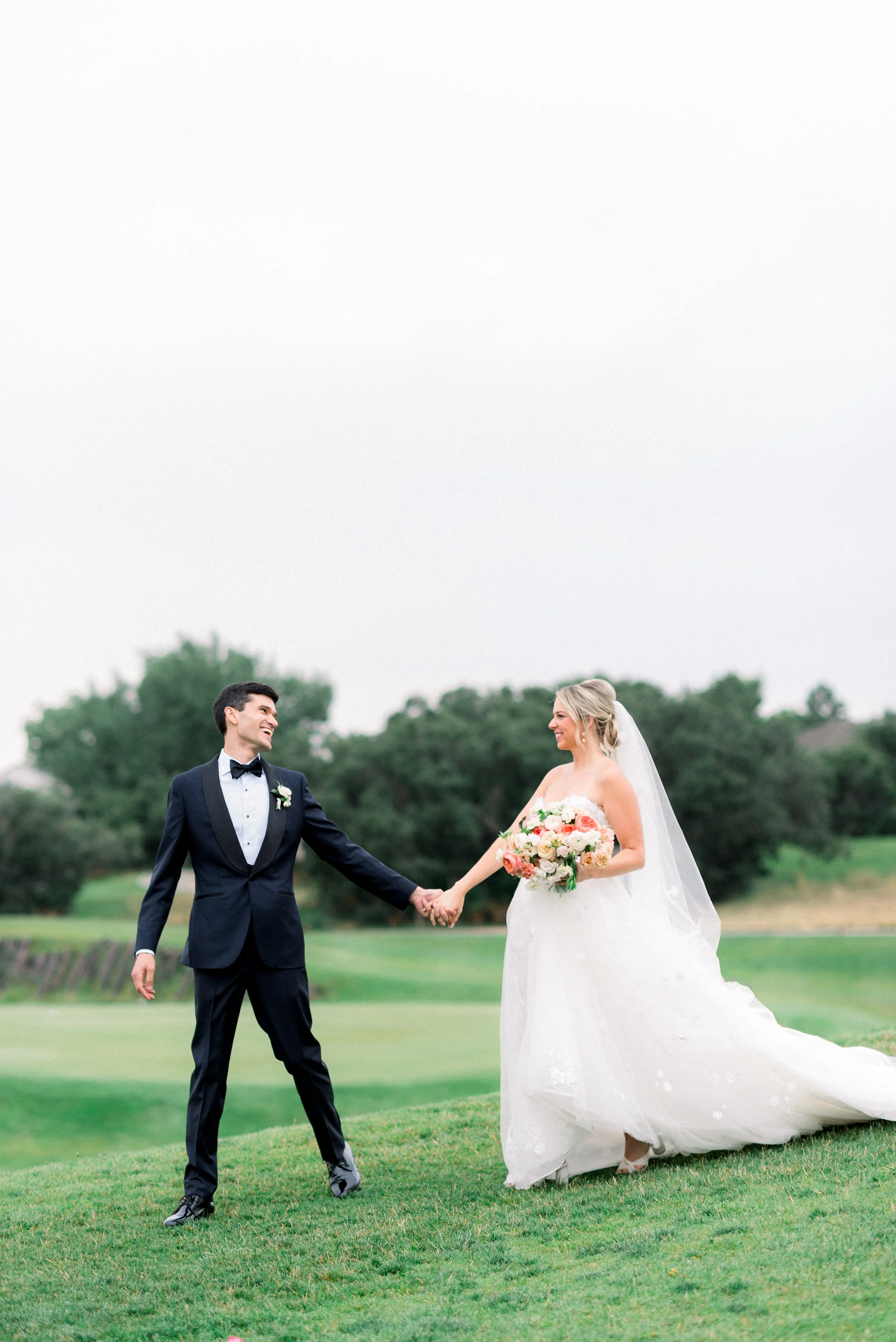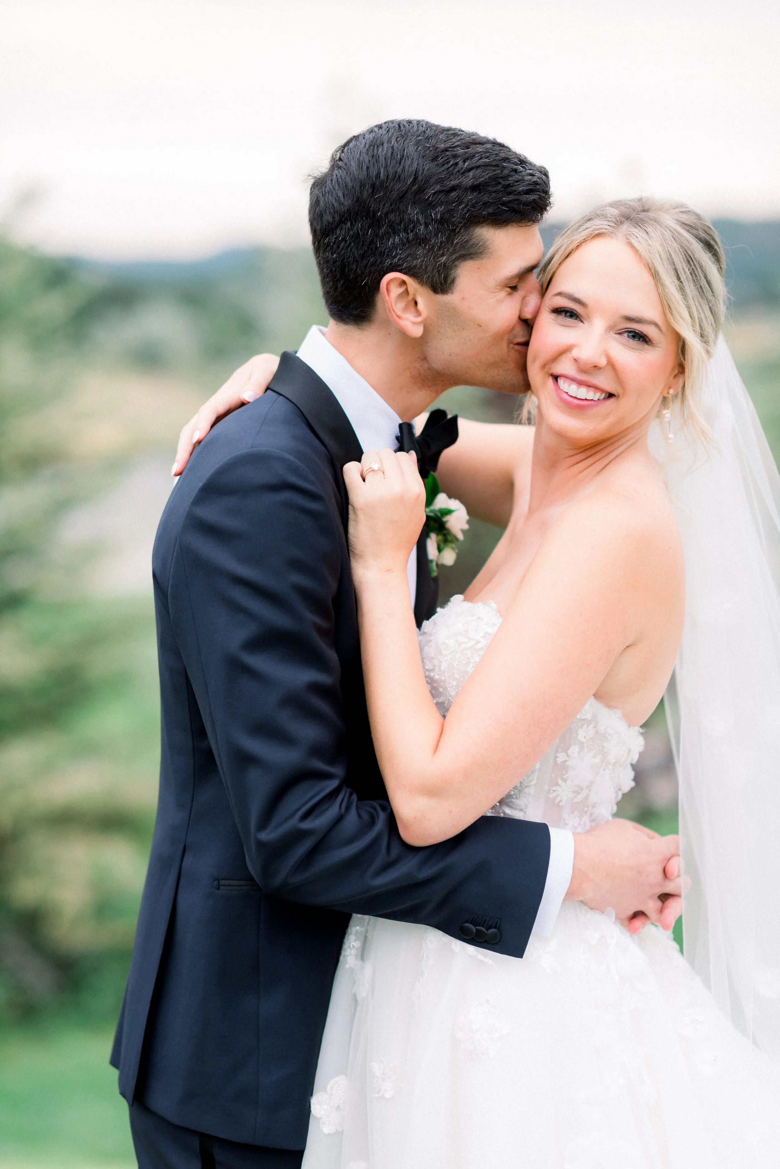 Emma and John’s wedding day was nothing short of magical. Set against the picturesque backdrop of The Oaks at Plum Creek in Castle Rock, Colorado, their celebration was a perfect blend of elegance, personal touches, and heartfelt moments. The Oaks at Plum Creek offers a stunning setting with its rolling hills, mature trees, and beautiful views of the golf course. The outdoor ceremony space, lined with trees, provided the perfect golden hour light as the sun set in the west. Emma and John exchanged vows in the outdoor ceremony space, surrounded by their closest family and friends. The couple's attention to detail was evident in every aspect of the décor, from the elegant table settings to the tiny details like their cocktail napkins that had handwritten notes the couple had written to each other on them. One of the highlight moments was Emmas dress reveal during the reception that was perfectly timed with her favorite Taylor Swift song. This moment made it allllll over TikTok and even to Inside Edition!