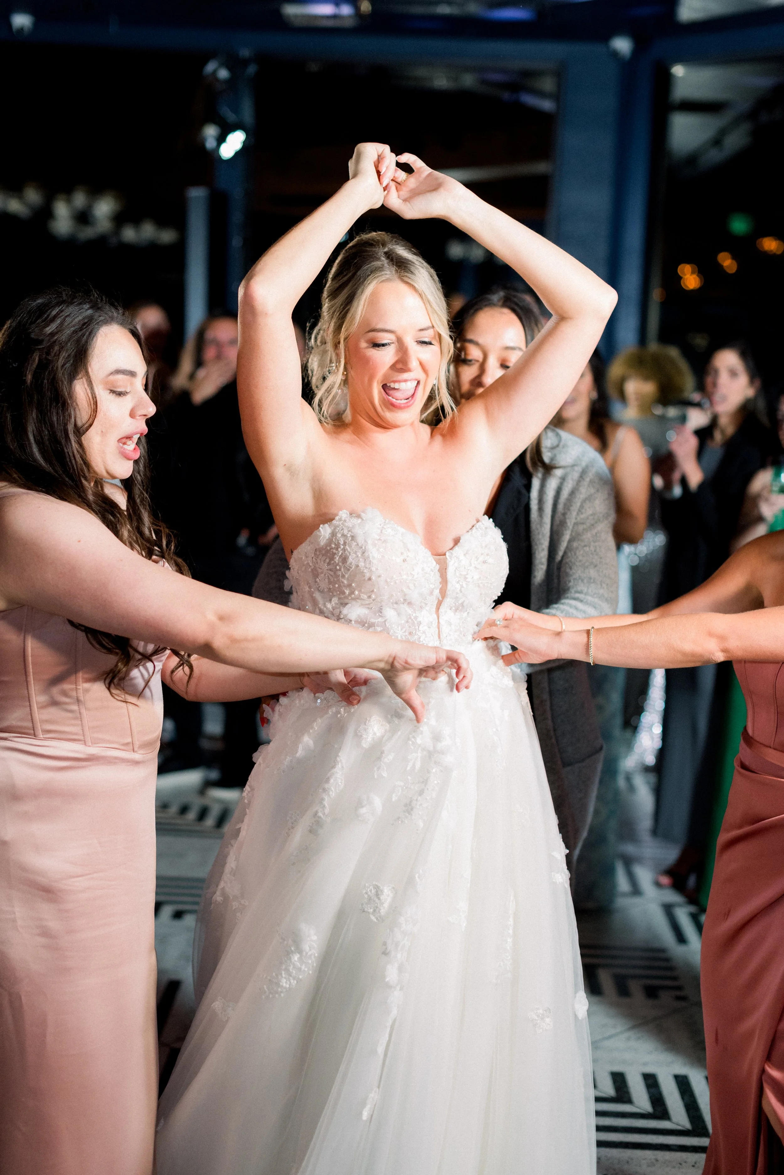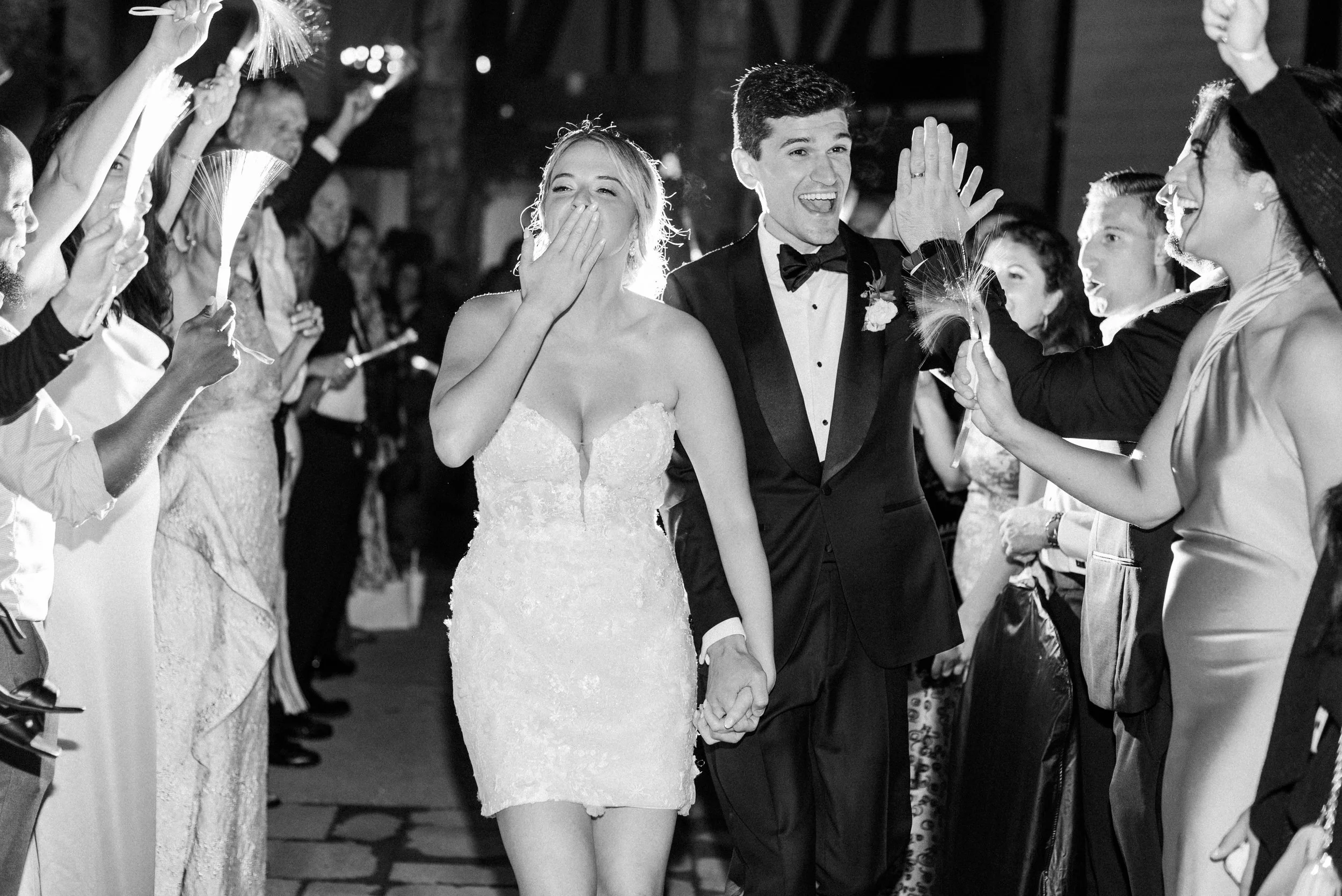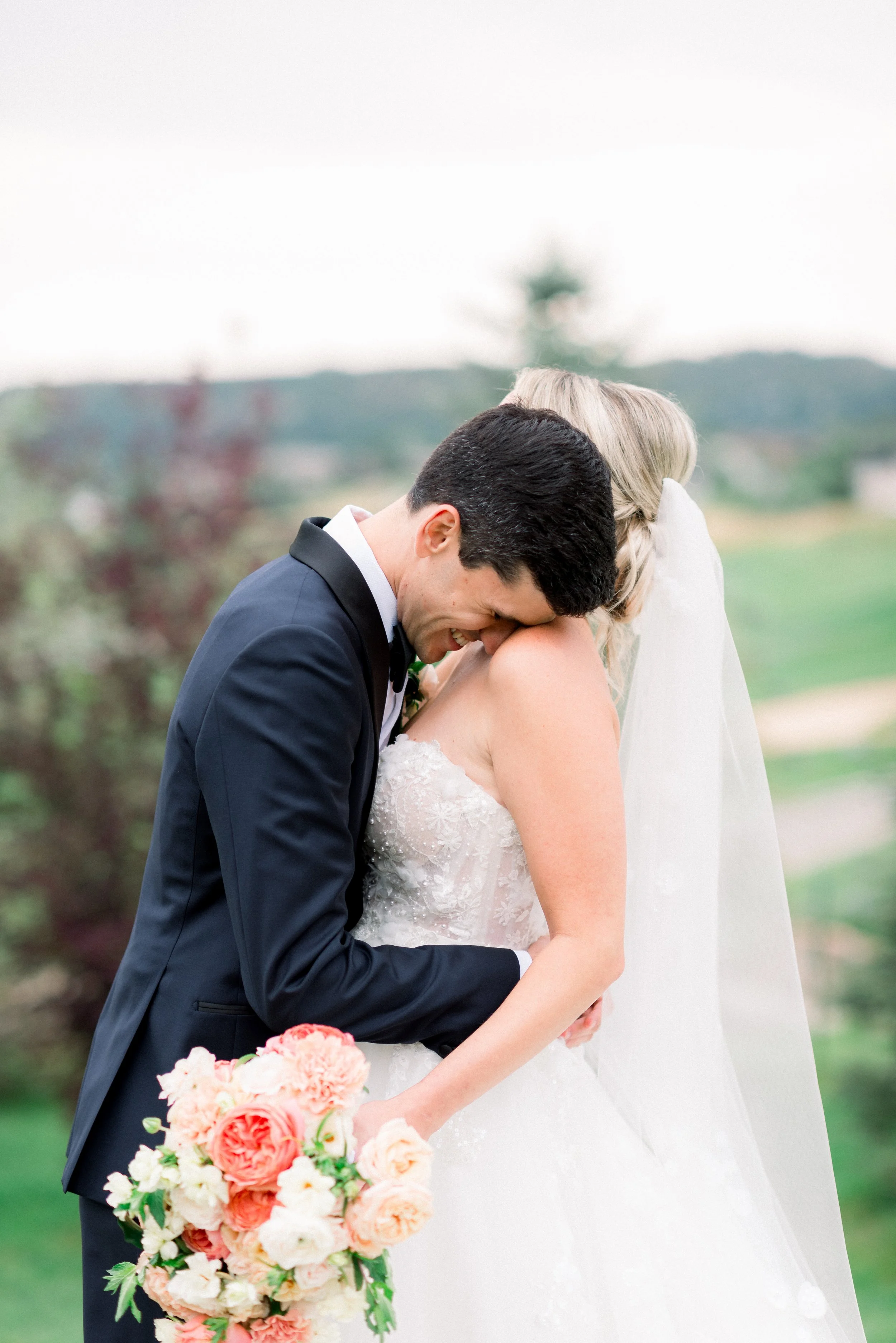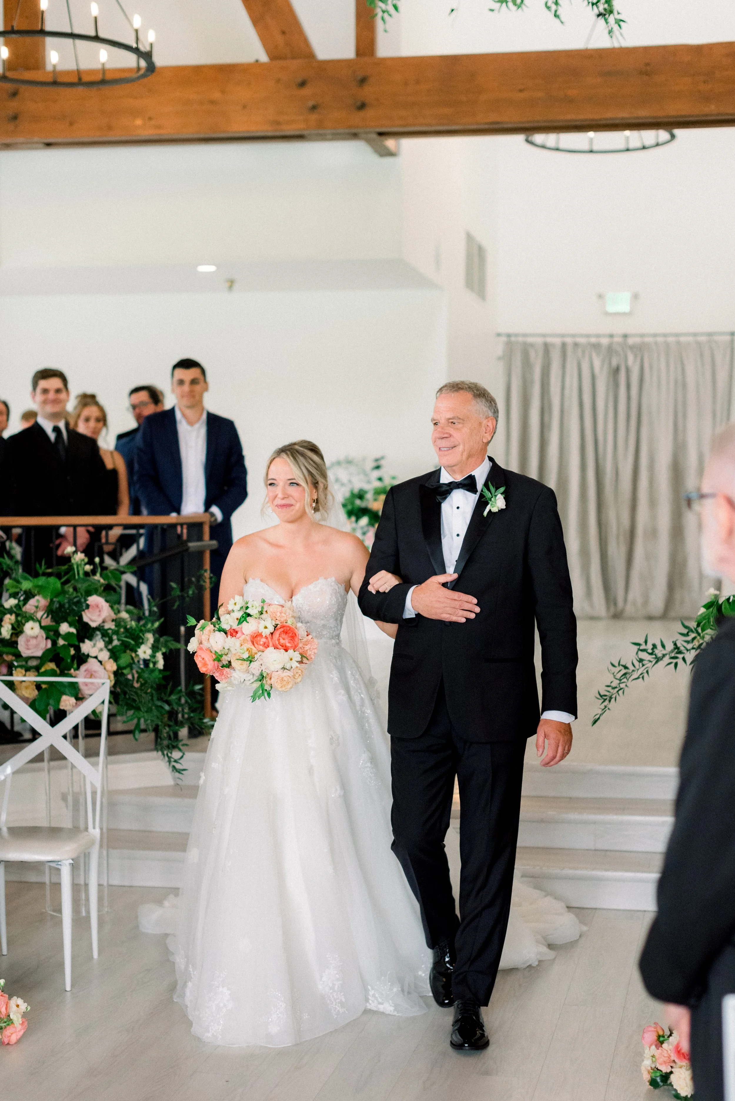 Emma and John’s wedding day was nothing short of magical. Set against the picturesque backdrop of The Oaks at Plum Creek in Castle Rock, Colorado, their celebration was a perfect blend of elegance, personal touches, and heartfelt moments. The Oaks at Plum Creek offers a stunning setting with its rolling hills, mature trees, and beautiful views of the golf course. The outdoor ceremony space, lined with trees, provided the perfect golden hour light as the sun set in the west. Emma and John exchanged vows in the outdoor ceremony space, surrounded by their closest family and friends. The couple's attention to detail was evident in every aspect of the décor, from the elegant table settings to the tiny details like their cocktail napkins that had handwritten notes the couple had written to each other on them. One of the highlight moments was Emmas dress reveal during the reception that was perfectly timed with her favorite Taylor Swift song. This moment made it allllll over TikTok and even to Inside Edition!
