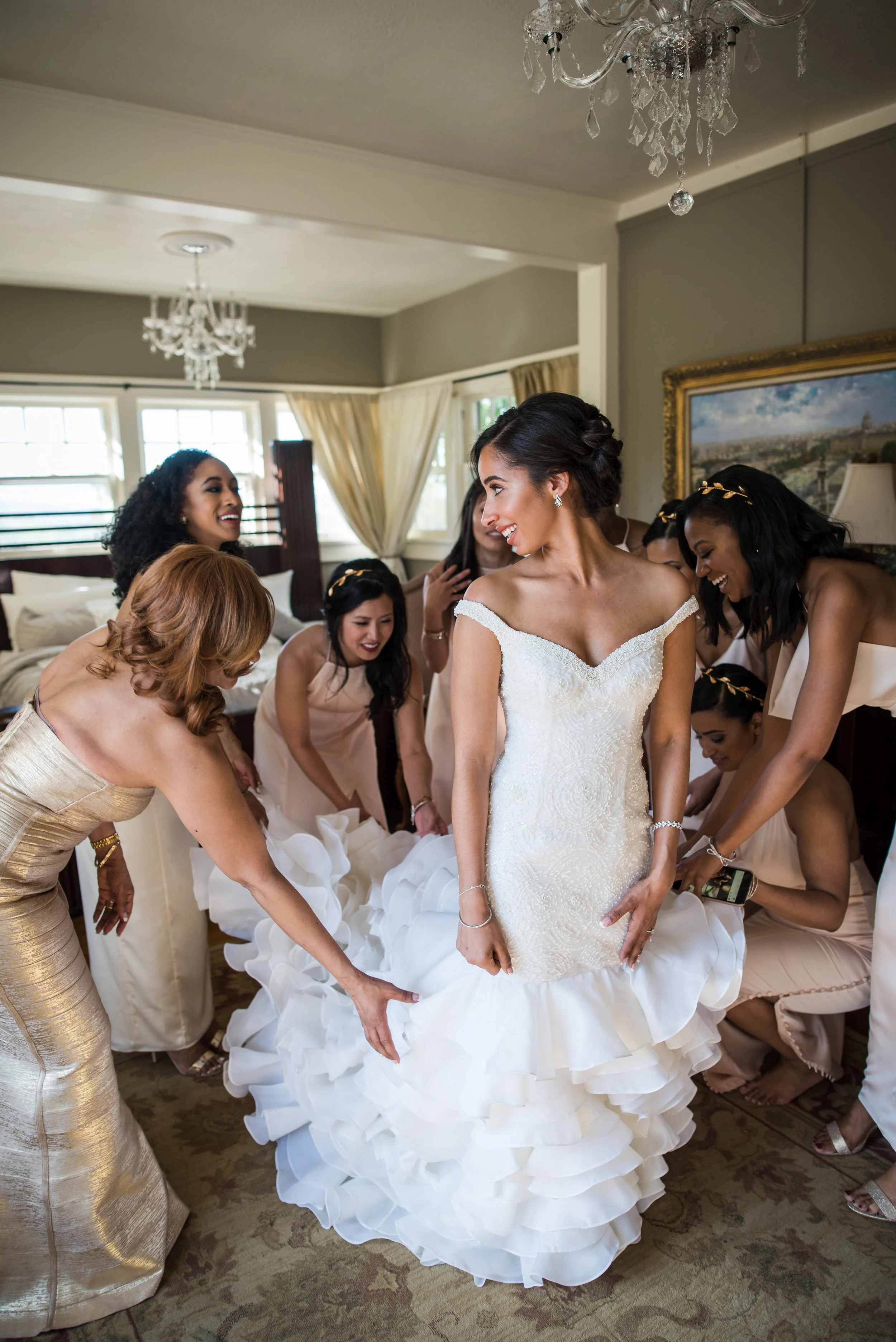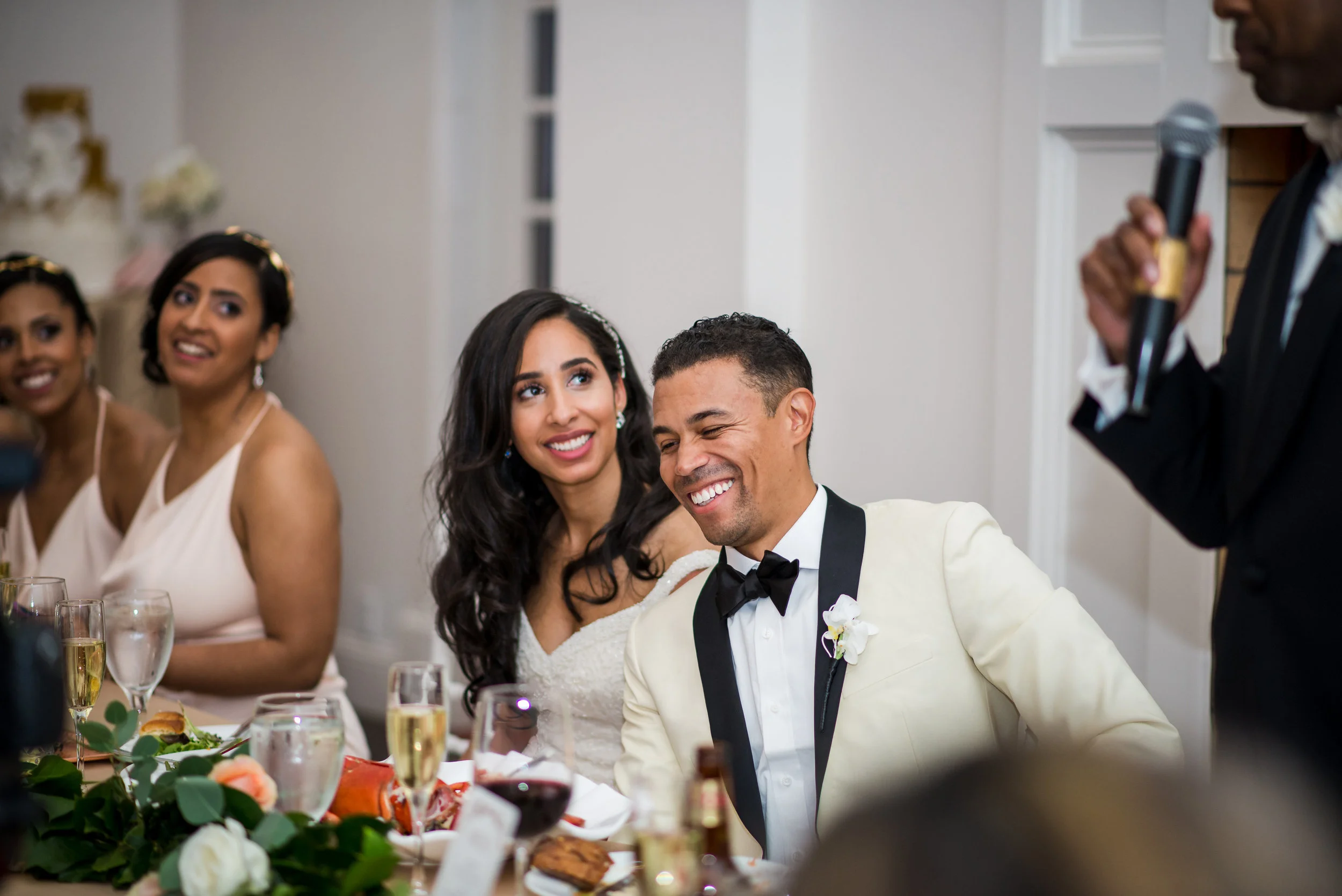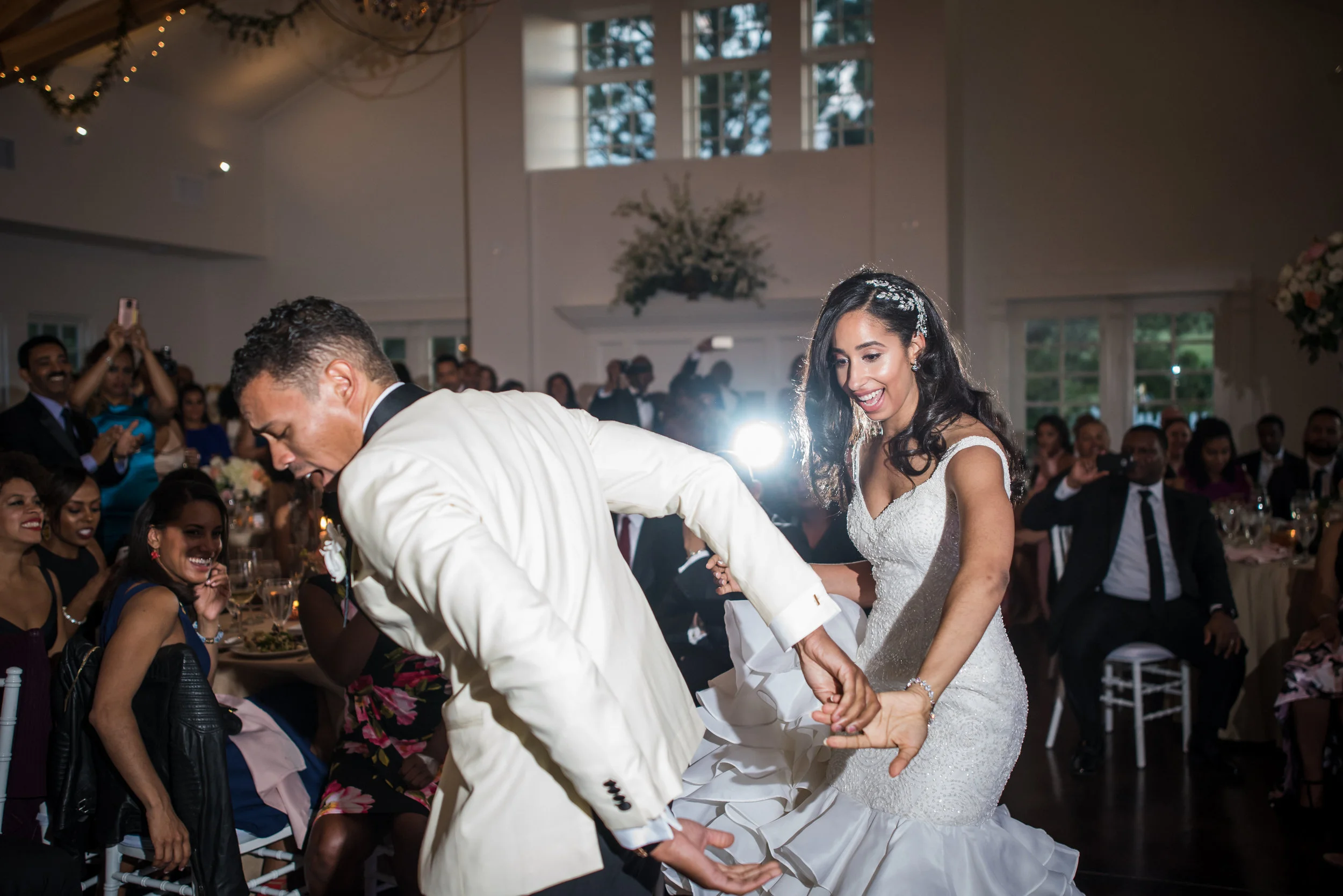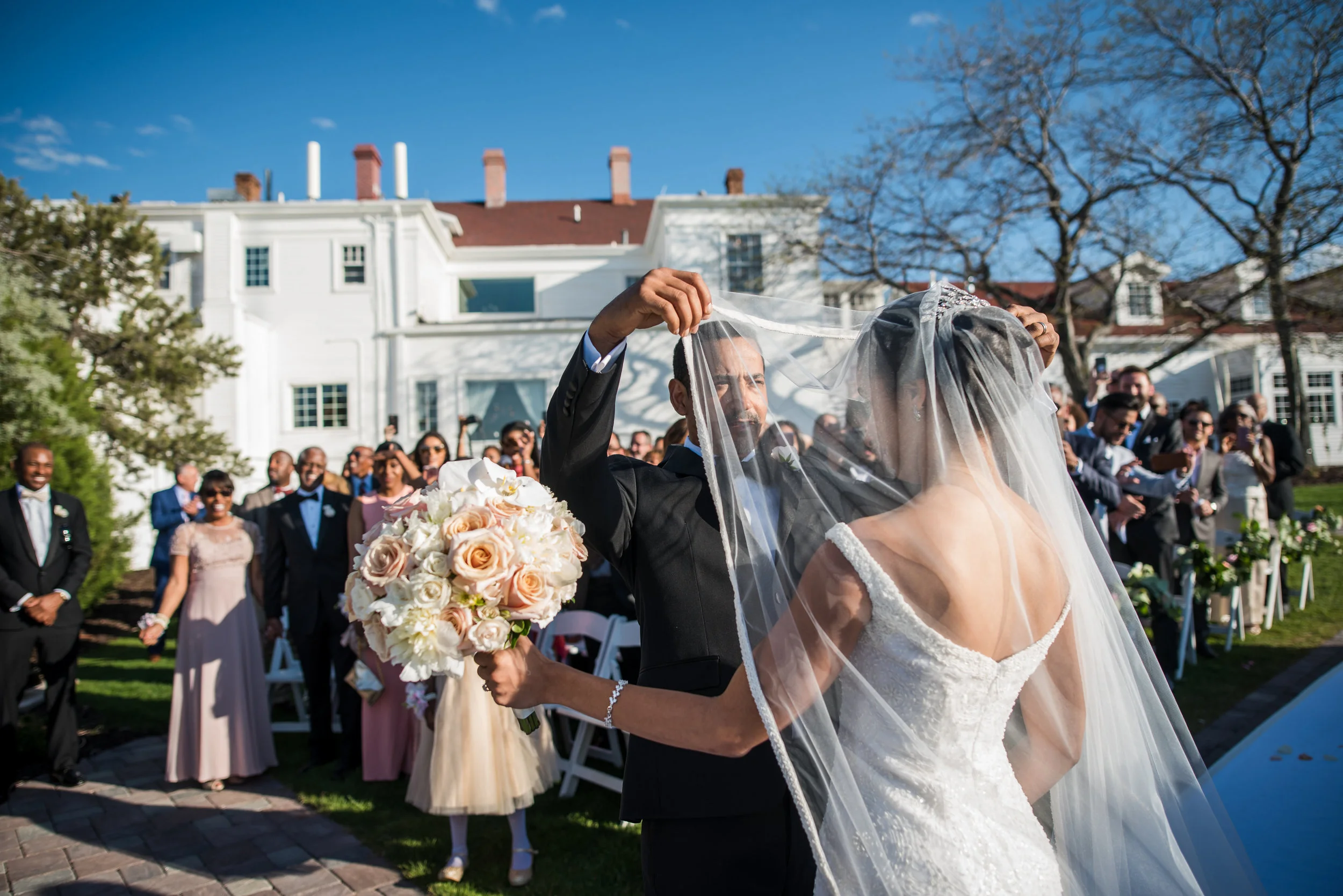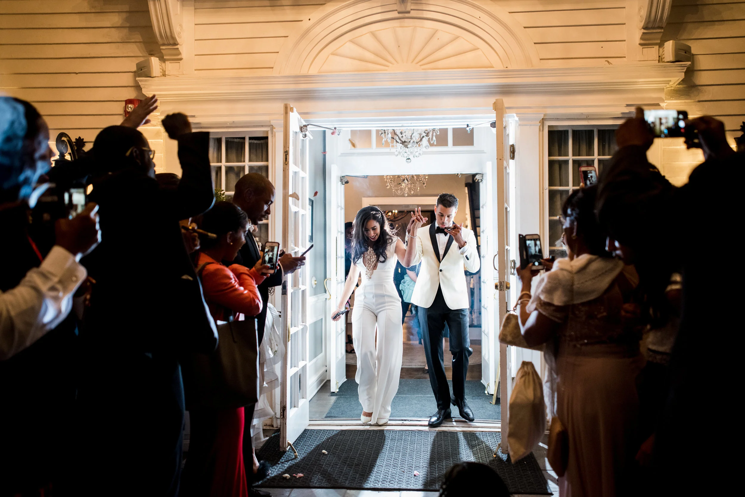 Jonathan proposed to Crystal on New Years Eve in the middle of Time Square with an Emerald engagement ring. With the whole thing caught on film with a secret photo shoot. You can say that he has a flair for the extravagant and we ran with that! After meeting this New York couple with big personality we could not wait to get started. The couple was married at The Manor House on May 29, 2017. This special day began the night before with an all girl sleepover at The Manor House's on site guesthouse. The ladies woke up and got ready in their robes gifted by the bride. In the mean time, the guys got ready in The Man Cave in the basement of The Manor House. As guests arrived, they were seated on the backyard terrance for the ceremony and were greeted by the sounds of Mary Keener's Harp. There was an asymmetrically decorated arch that perfectly framed the city of Denver in the distance and the aisle was lined with floral garland. The couple opted not to do a first look and saw each other for the very first time as Crystal walked down the long winding aisle to Jonathan. It was an emotional entrance as she was escorted by her father in her beautiful cathedral style veil. The couple was married by Crystals mentor in a religious ceremony. Both Jonathan and Crystal wrote their own vows to each other that were fun and yet heartfelt. After the couple said I do guests threw flower petals in celebration. Cocktail hour was on the front porch of the house where they enjoyed cocktail, appetizers, and jazz music by three of the members of The Diamond Empire Band. The bridal party snuck into the field for photos where they used colored smoke bombs to create some dramatic and amazing photos. The ball room was decorated with varying heights of lush centerpieces and candles created by Newberry Brothers. The wooden beans on the ceiling were draped in a greenery garland and twinkle lights. The theme of the wedding was to be a lush garden and when the team was done it was exactly that. The whole bridal party was introduced into the reception and the newlyweds went straight into their first dance which started as a slow song and ended with them breaking into a dance to "I Like to Cha Cha". The guests enjoyed a dinner of Roasted Duck Breast with Apricot Chutney and Maple Sriracha Salmon provided by the onsite catering staff. The night went on with toasts and the cutting of the stunning Chocolate Dulce De Leche Cake provided by Azucar Bakery. We just cant get over this hand crafted sugar flower. Because of Jonathan's love for cigars the couple flew in a cigar roller all the way from Miami to hand roll cigars for the night. Each cigar had a gold label around it with the couples family crest and their wedding date. It was such a nice personal touch and the cigars were a big hit with this fun group. The couple ended the night with their big send off as they rolled away in a vintage Rolls Royce.